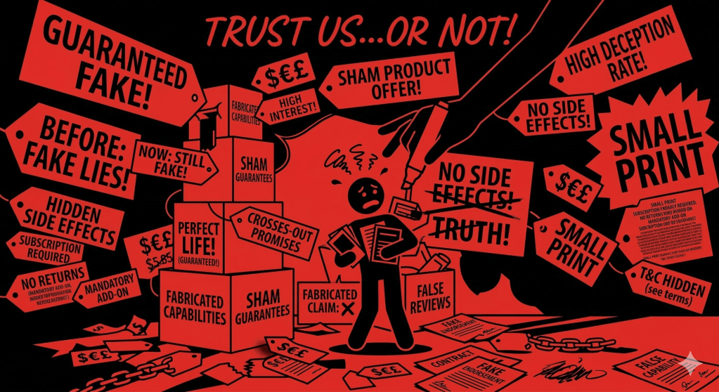 Outright lying or breaking promises about the product itself.