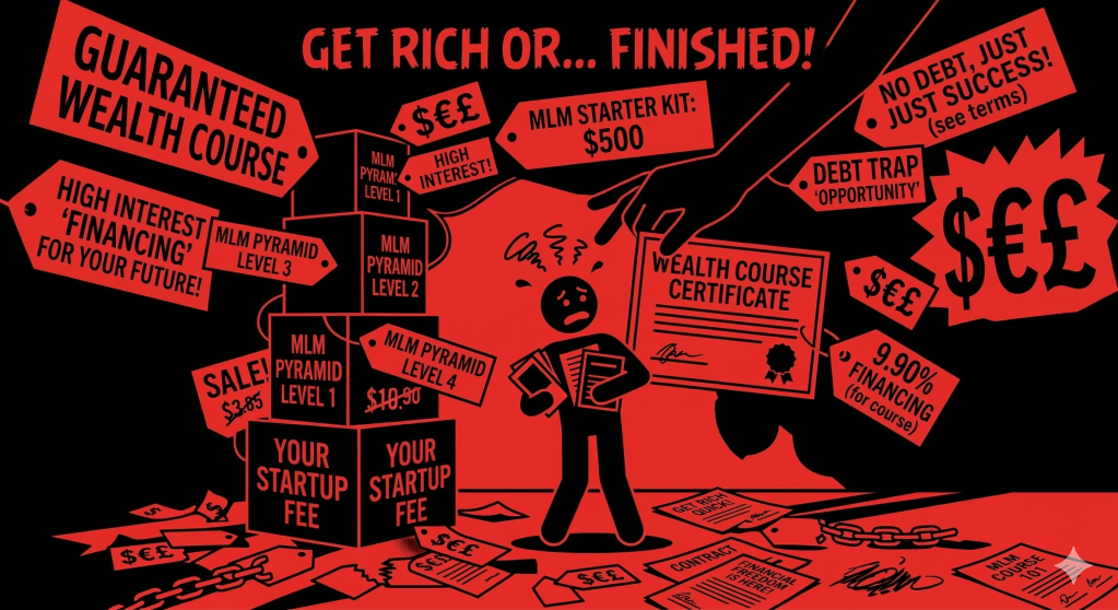 Marketing MLMs (Multi-Level Marketing), pyramid schemes, or “get-rich-quick” courses to desperate individuals.